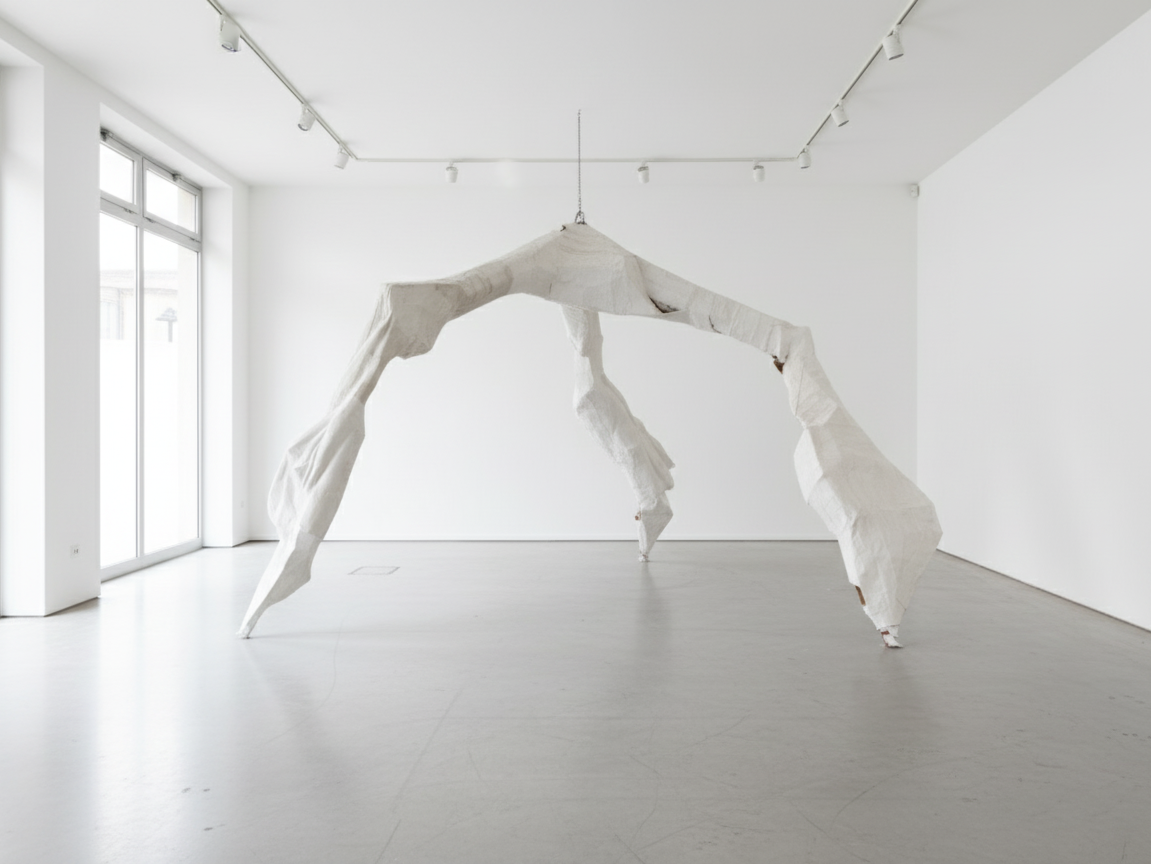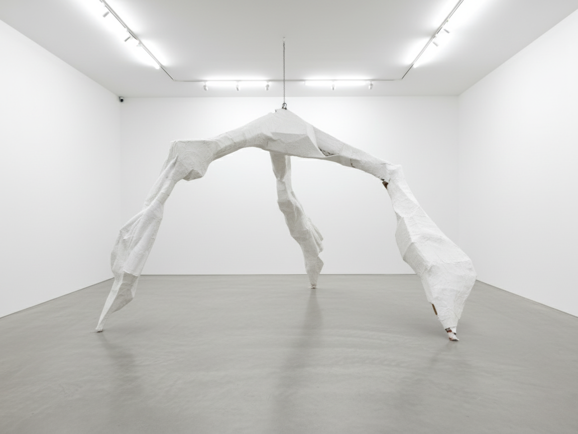 Somatic Architecture was a large-scale installation created during my time at the National Art School. The work began with a welded steel armature, suspended from the ceiling with chains and gradually built outward through layers of cardboard, hessian fibre, and plaster of Paris. This composite of industrial and organic materials produced a form that was both skeletal and architectural, strong enough to stand on its own yet visibly handmade and bodily.